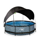 Piscina EXIT Stone ø300x76cm con pompa filtro e pensilina - grigio