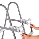 The swimming pool ladder for swimming pools with a frame height between 85 and 105 centimeters is an excellent accessory to help you climb in and out of the swimming pool safely. The step has a railing which children can hold on to and is equipped with anti-slip steps, which means they won’t slide off when the ladder is wet. And the step is also easy to detach from the outside of the swimming pool, so that the very young ones can’t just climb into the swimming pool.