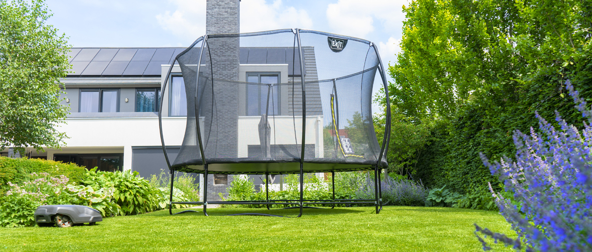 È possibile usare insieme un trampolino elastico e un robot tosaerba in giardino? Con la protezione per trampolino per tosaerba robotizzato di EXIT Toys, di sicuro! Grazie a questa protezione intelligente per robot, il robot rileverà le gambe del trampolino elastico e non ne danneggerà la struttura. Così potrai assicurarti contemporaneamente il massimo divertimento sul trampolino elastico e un prato ben tagliato. Scopri i vantaggi della protezione per trampolino per tosaerba robotizzato di EXIT Toys.